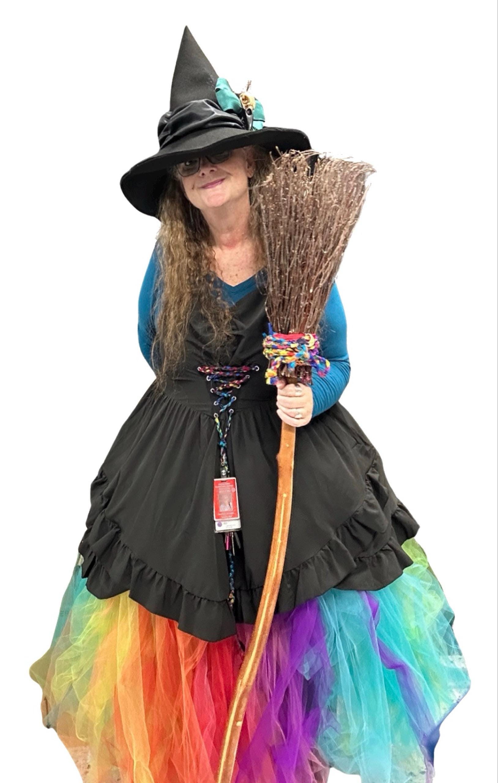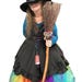 This witch hat is made of black vegan-friendly felt. It offers a classic witch look with a tall, straight cone perfect for a dressed-up witch look. Its sloped brim is shaped with large scallops and has layers of magic stitched together for a rigid look and feel without a wire.